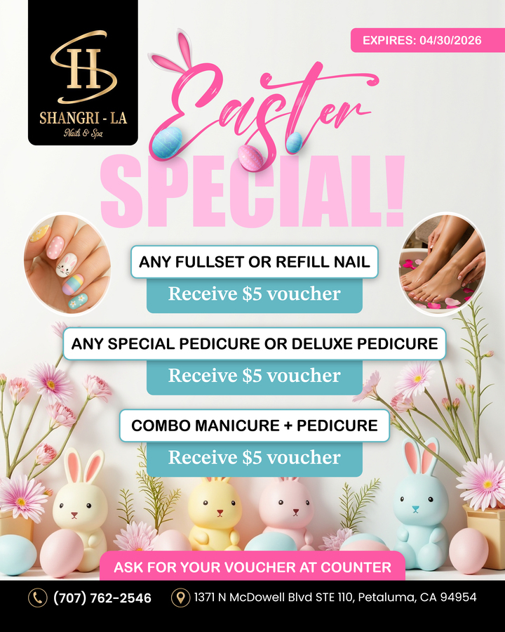 Welcome to Shangri-la Nail And Spa. Located at a beautiful place in Petaluma, CA 94954. Shangri-la Nail And Spa offers the ultimate in pampering and restoring your beauty with our whole-hearted, careful & professional staff. Comprehending customer is not an easy task. It’s even harder when it comes to nail art & caring services.